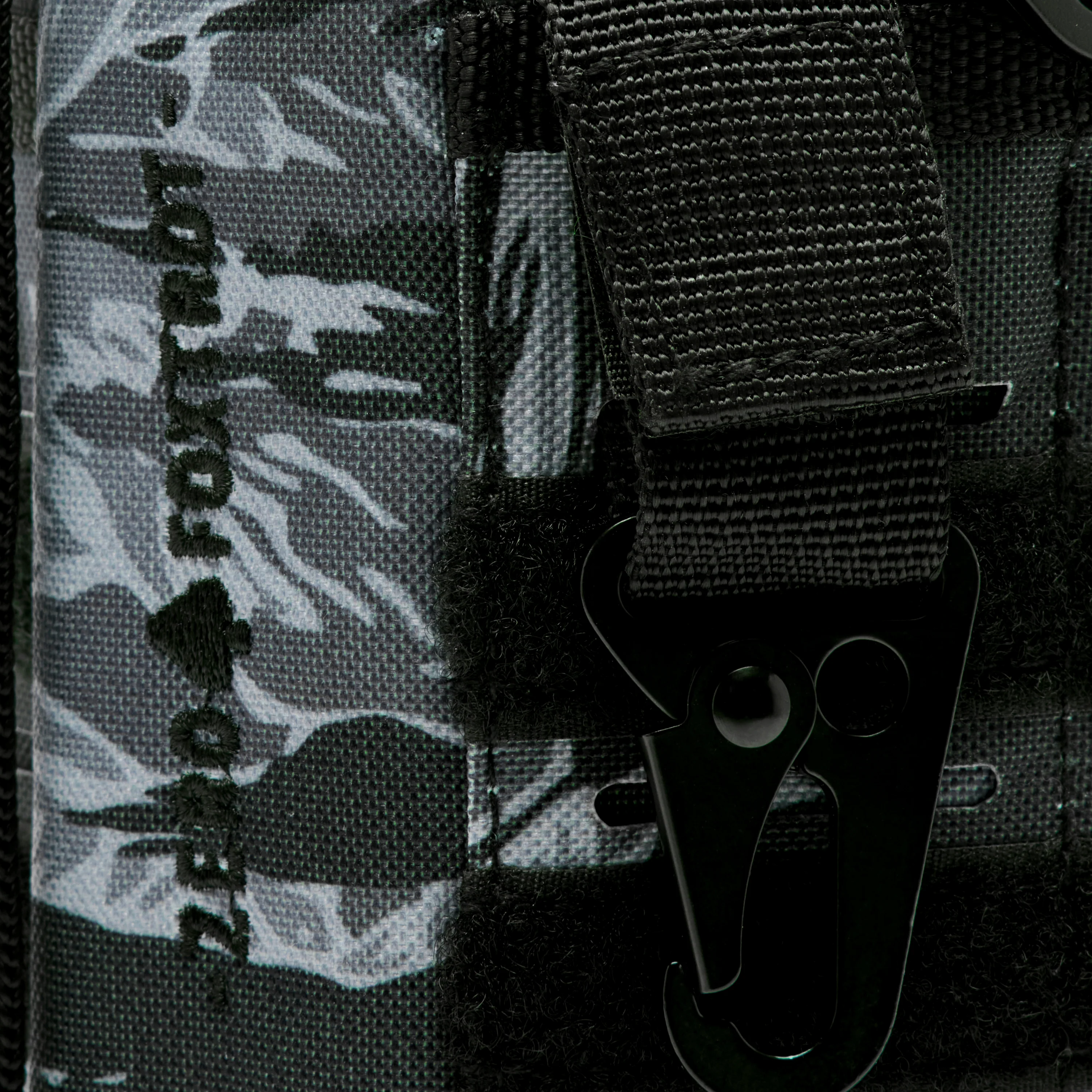 - MOLLE webbing and metal carabiner for looping additional tac items and pouches